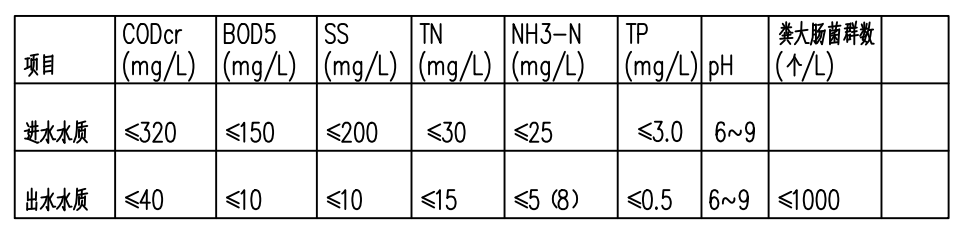 根據業主方提供的資料和要求,本項目污水處理后需滿足下列指標,具體要求如下: